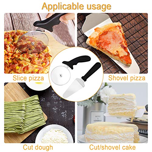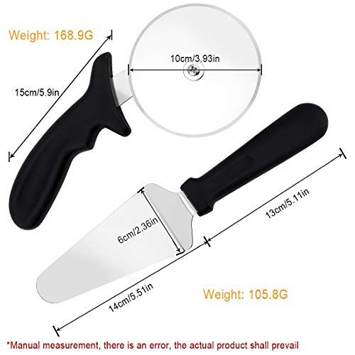 【Hoogwaardige materialen】 Het pizzabiel bestaat uit 410 roestvrij staal en de pizzaserver is gemaakt van 430 roestvrij staal, wat de hardheid en de sterke corrosiebestendigheid van die producten garandeert, maakt de pizzasnijder en pizzaserver duurzamer en scherper.