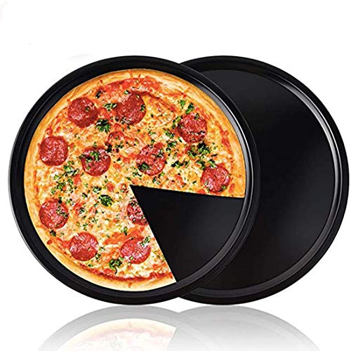 CTTPEG Ronde pizza-bakplaat, pizza-pannen, keukenbakplaat, duurzame bakvormen met anti-aanbaklaag, koolstofstaal, 2…