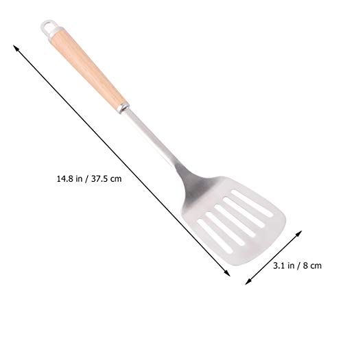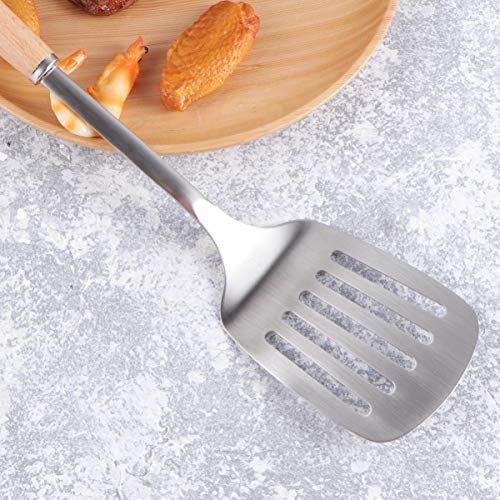1 x roestvrijstalen draaispatel anti-stick koekje sleufspatel opknoping pannenkoekenpan flipper spatel schop met beukenhandvat voor het bakken van huiskeuken.