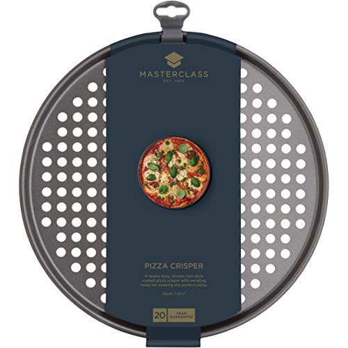De antiaanbak-pizza-bakplaat uit de serie Master maakt het makkelijker om pizza’s met een perfect knapperige korst en doorgebakken deegbodem te bereiden; of je nu de pizza nu klaar kookt, diepgekoeld of uitgemaakt is. Deze knapperplaat is gebaseerd op een constructie met anti-aanbaklaag koolstofstaal en is op zijn gehele bodemoppervlak geperforeerd. Daarmee kan de hete lucht overal in de grond rondlopen, waardoor oververhittingsplekken in het deeg worden vermeden. De geperforeerde pizzaplaat heeft een diameter van 32 cm. Afgezien van de bereiding van grote pizza’s kun je hiermee ook een bruschetta of een voorgebakken baguette baguette bakken. Master Cla-ss voor betrouwbare bereiding in de keuken. Deze pizza-bakplaat is gemaakt van 1 mm dik koolstofplaatstaal en voorzien van ventilatiegaten. Door deze gaten wordt de hete lucht in je bakbuis gelijkmatiger verdeeld. Zo kan het in het deeg aanwezige vocht beter ontsnappen. De robuuste uitvoering van koolstofstaal garandeert dat de bakplaat in de bakpijp niet kromtrekt, terwijl de galvanisering voor roestbescherming zorgt. Bij de juiste verzorging zal het jarenlang betrouwbare diensten leveren. Quantum II anti-aanbaktechnologie Deze bakplaat is voorzien van een dubbele laag technisch veeleisende antiaanbaklaag Quantum II. Daardoor kan het bakproduct snel, gemakkelijk en zonder risico op beschadiging worden losgemaakt, wat vooral nuttig is bij zeer dunne, gevoelige deegpaden. Quantum II is zeer duurzaam. Het als antikleefbasismateriaal gebruikte silicone is versterkt met speciale keramische stoffen, waardoor de coating bijzonder resistent is. Bovendien wordt het plaatstaal vóór het aanbrengen gezandstraald. Quantum II overtreft in feite alle conventionele antiaanbaklaags. Andere kenmerken: de antiaanbaklaag Quantum II bevat geen PTFE, PFOA of BPA — koelkast, vriezer en vaatwasmachinebestendig — echt eenvoudig te reinigen — bakbuisbestendig tot 220 graden Celsius — met 20 jaar garantie van Master Cla-ss en 5 jaar antikleefgarantie via Master Cla-ss met bakgerei uit de serie Master Cla-ss kunt u uitstekende gerechten dagelijks in je keuken bereiden. Deze collectie van premium kwaliteit omvat meer dan 600 uitstekende keukenapparaten, keukenhulpen, messen en accessoires, evenals een bekroond bakgereiassortiment. Winnaar van de door het Housewares Magazine toegekende onderscheiding Best of Best Sellers 2014 en 2013.