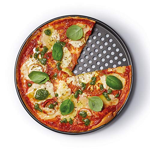 KitchenCraft Pizzabakplaat, ronde pizzaplaat met gaten, antiaanbaklaag ovenplaat voor pizza en flambée, pizzaset…