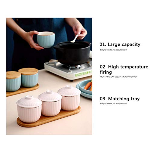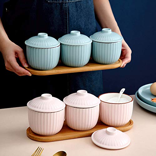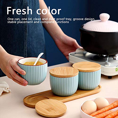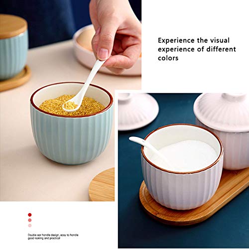 Kruidendoos, kruiderij Cruet fles Spice Jar Set van 3 keramische potten Spice potten/potten, cruet met lepel, deksel en…