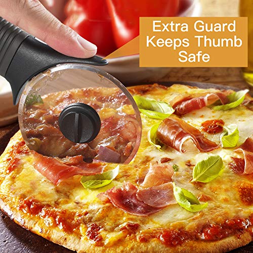 🍕 Comfortabel ontwerp: deze pizzasnijders worden gekenmerkt door een uitstekende duurzaamheid en hebben een unieke ergonomische handgreep met zachte oppervlakken. Duimbeschermers van gegoten zink houden de vingers weg van het mes voor extra veiligheid, terwijl de zachte, antisliphandgreep de druk absorbeert.